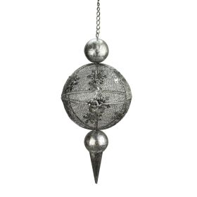 18" Silver Distressed Antique Metal Snowflake and Mesh Finial Hanging Tealight Candle Lantern
