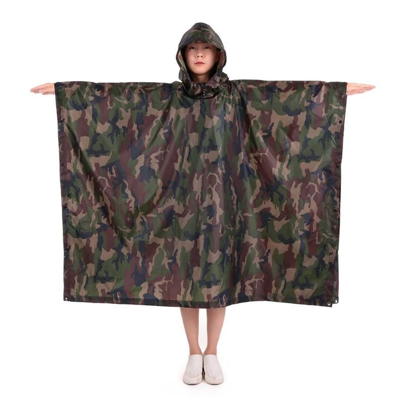 The hooded poncho can be used as a raincoat, camping mat, canopy shelter to block sunshine.
