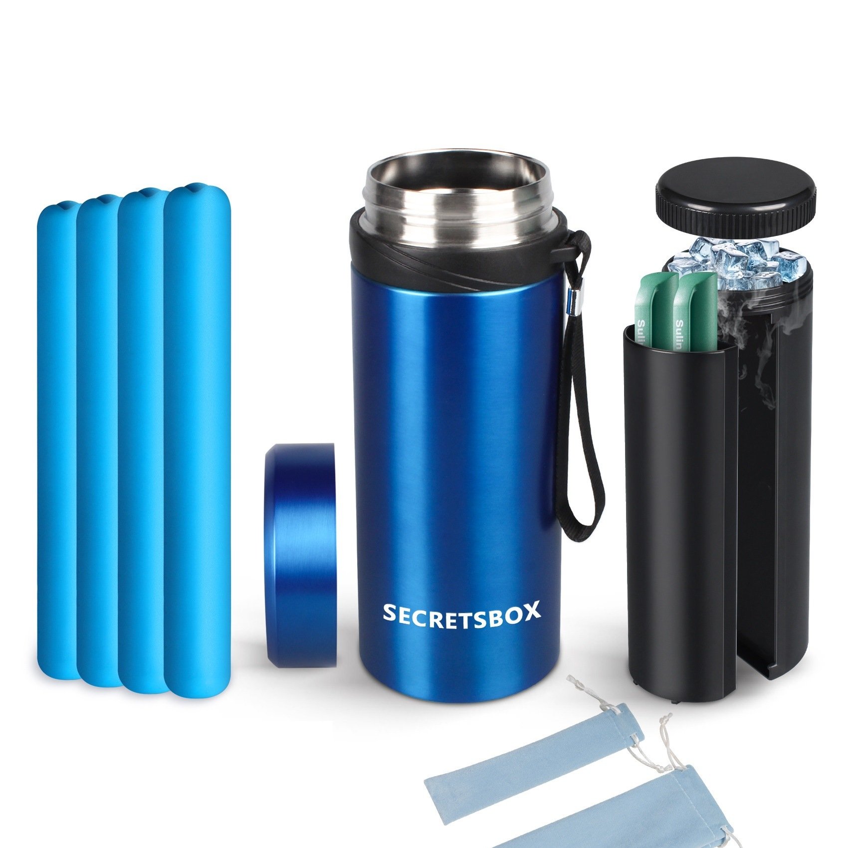 304 stainless steel cup body, food grade PP material, internal high vacuum design, used with natural bio-gel cold storage bottle, can provide 2-8 °C (36-46°F)for up to 22-36 hours under ultra-high temperature environment 104 °F to ensure drug safety.