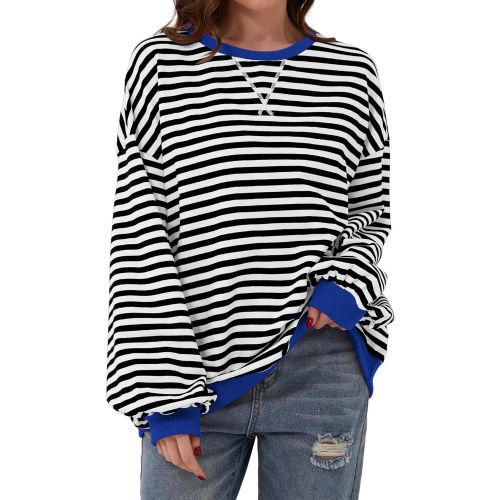 Loose Striped Long Sleeve T-shirt Casual Pullover Sweater For Womens Clothing